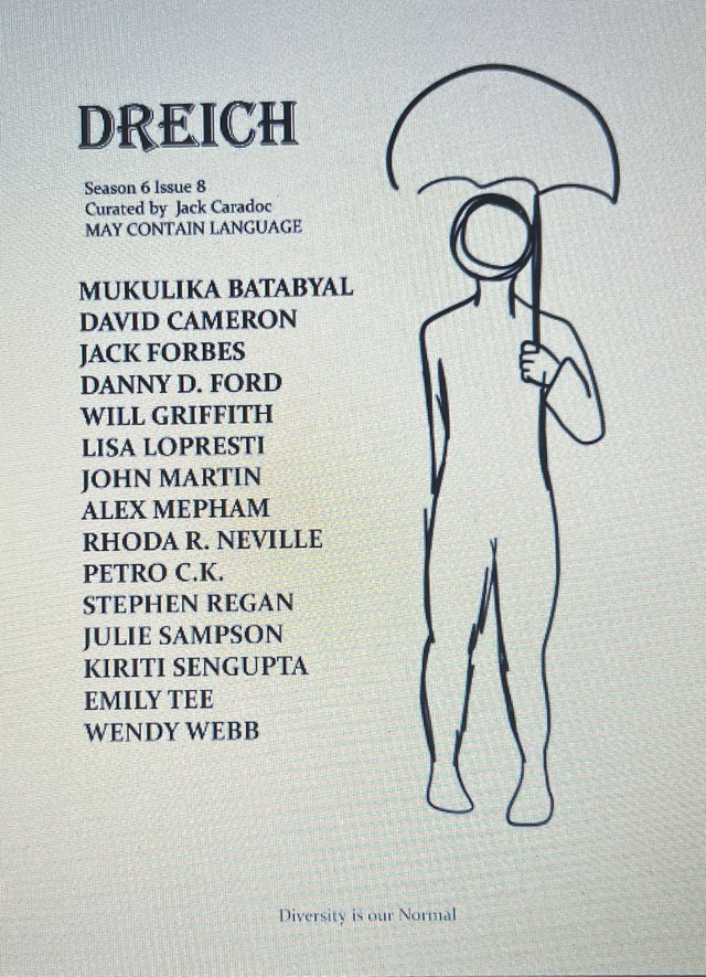 Acceptance letters during what had otherwise been a difficult year were particularly welcome. Thanks are due to Jack Caradoc, editor of Dreich magazine.